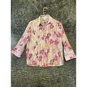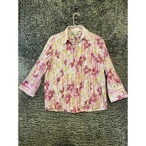 Joanna Pink Accordian semi sheer Top Floral button Blouse Crinkle Medium