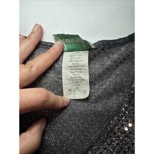 Joanna VTG Womens 3X Silver All Over Sequin Boxy Pullover Top V Neck Blouse EUC
