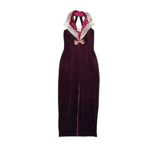 Joara Mode Velvet Dress Women Size Small Vintage Halter Sailercore Bow Maxi