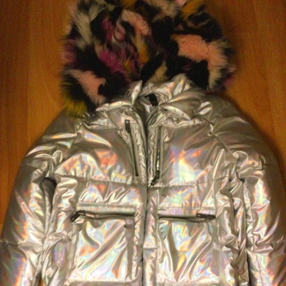 Jocelyn Iridescent Puffer Parka with Multicolored Removable Fur Hood