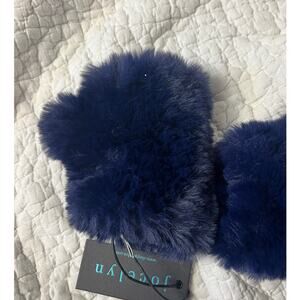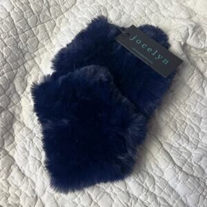 Jocelyn Mandy Navy Faux Fur Fingerless Mittens Gloves Holiday Gift NWT