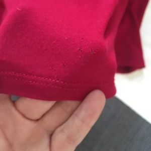 "Elance Supersoft" micromodal / spandex blend. Luxurious feel! Teeny pinholes near hemline, cannot see except on *close* examination. Will love for sleep or yoga. πΊπ΄πΊ