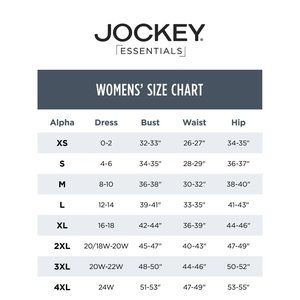 Experience everyday slimming and all-day confidence with the Jockey® Essentials Slimming Cool Touch High-Waist Brief. The high-waisted, 360° tummy panel provides targeted, all-around control for comfortable slimming and a smooth silhouette from every angle, adding the perfect layer under all your favorite leggings, joggers, and jeans. The silky-soft stretch fabric glides under your clothing without clinging while the cooling touch enhancement wicks away moisture to help you stay cool and dry even on your busiest days. Plus, the no-slip grip tape helps prevent rolling so you can move about your day comfortably and confidently. Jockey® Essentials offer all-day comfort tailored to fit your everyday life—making every moment feel good. Whether you’re at work or at play, hitting the gym or snuggling in for a restful night of sleep, these styles are crafted with the most essential elements in mind: comfort, fit, and style. With soft, stretchy fabrics, durable construction, design details you love, and the quality you know and expect from a brand you trust, Jockey® Essentials always feel great against your skin and put your comfort first, helping you look—and feel—your very best. At Jockey, your satisfaction is of utmost importance to us. Like all Jockey® products, Jockey® Essentials are designed to deliver comfort, quality, and fit