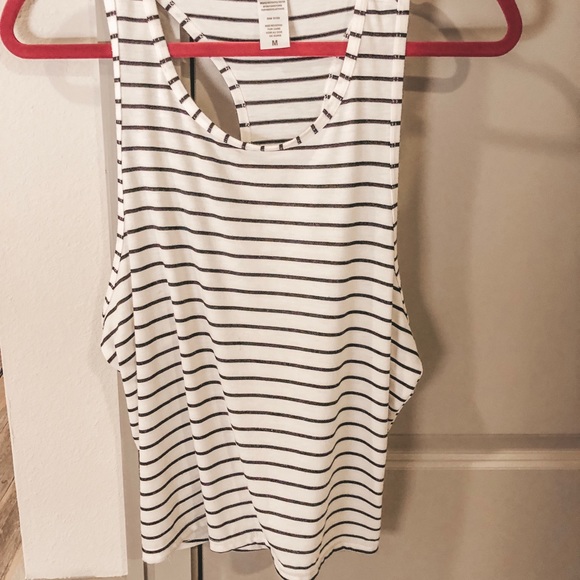 Striped razor back tee. Extremely soft and I love the side detail! Looks great under a jean jacket
