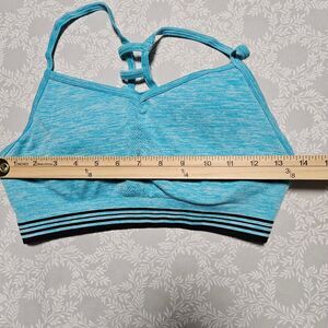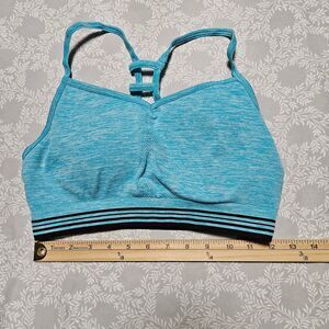 Jockey Sports Bra Size XL Turquoise with Black Stripes Removable pads Please reference photos for measurements and condition. Compare measurements to a clothing item that fits great for best results. Colors may vary slightly due to lighting and/or device used for viewing. Thanks for taking a look!