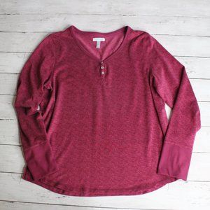 Jockey Women's Long Sleeve Pull Over Henley Top Size M Raspberry Pink