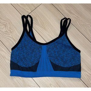 Jockey Womens Printed Knit Sports Bra Unlined Wire Free M Medium Blue Black