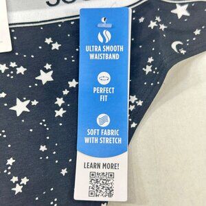 This Jockey Essentials Women's Cotton Stretch Thong features a stylish black celestial print. Comfortable and stretchy, it's composed of 95% cotton and 5% spandex. Size is large. Made in Bangladesh.