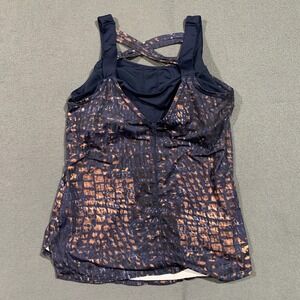 Keywords: Jockey, tank top, activewear, athletic, exercise, workout, blue, brown, abstract, print, sleeveless, women's, size L, polyester, gym