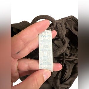 Brand: jockey Size: L Built in bra, no padding 85% polyester, 15% spandex Soft, stretchy PTP 16” Length 19”