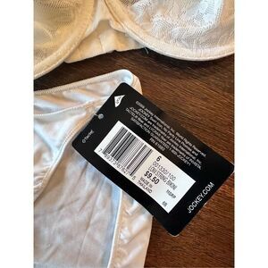 Pretty Jockey intimates all in white. New w tags no show undies in size 6 and 2 pre-owned Demi push up bras. One ran smaller and is a 34D. The other a 34C. Bras in excellent condition. Please refer to photos.