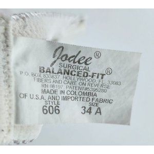 Jodee 606 Surgical Mastectomy Balanced Fit Bra Lace Trim White Size 34A