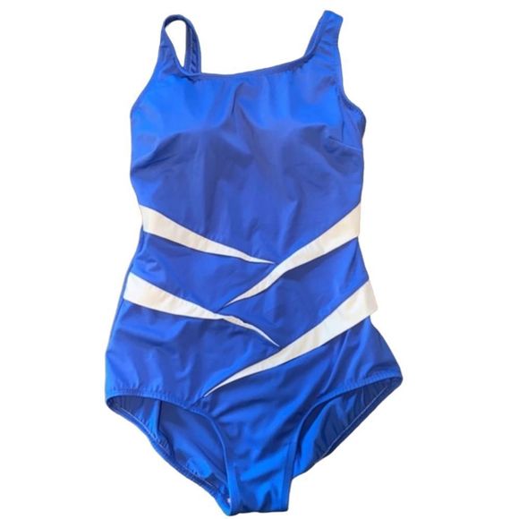 Jodee One Piece Swimsuit Size 14 Scoop Back Tank Style Blue White Color Block Shelf Bra