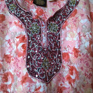 Jodha women's 50 Full floral blouse is made in India. It has beaded and embroidered embellishments around the neck. It also has side slits.