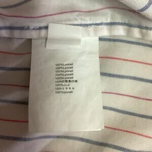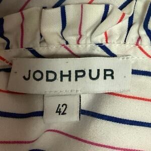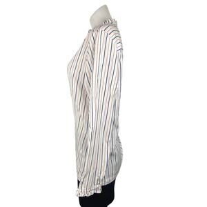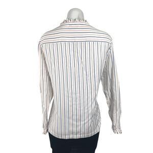 Jodhpur White Red Blue Pinstriped V Neck Ruffle Long Sleeve Shirt Top Size 6