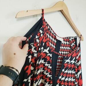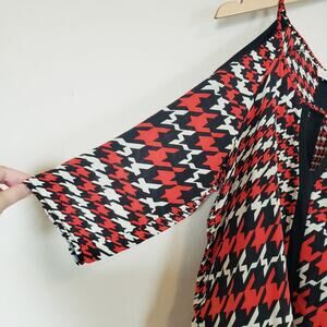 Jodi B Wise Silk Houndstooth Cold Shoulder Tunic Top Blouse Women's Medium Artsy