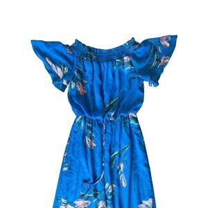 Jodi Kristopher Blue Floral Maxi Dress M Off Shoulder Flutter Sleeve Boho Summer