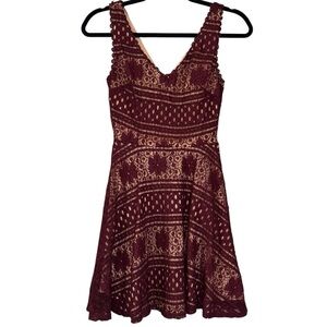 Jodi Kristopher Burgundy Lace Skater Dress Women’s size 1 Formal Prom Wedding