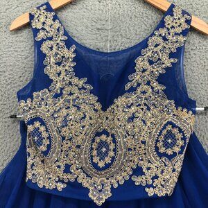 Jodi Kristopher Dress Womens 1 Jrs Blue Gold Lace Dance 2 Piece Sparkle Cocktail