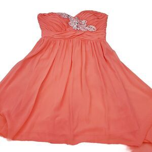 Jodi Kristopher Dress Women's 7 Coral Sleeveless Rhinestone Fit and Flare Formal