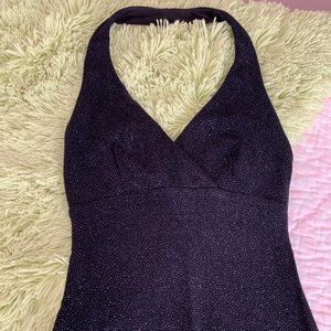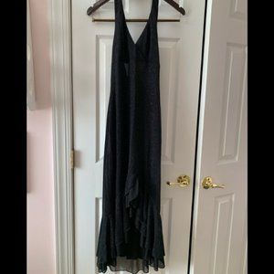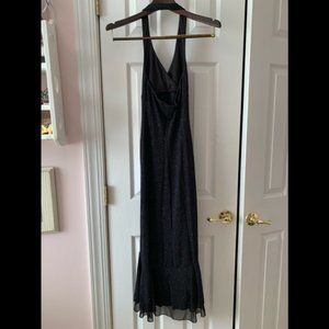 Jodi Kristopher Formal Gown V-Neck Halter Hi-Low Black Glitter Vintage Dress