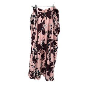 Jodi Kristopher Formal Prom Dressy Pink and Burgundy Floral Lined Maxi Skirt 1, minor stain on hem.