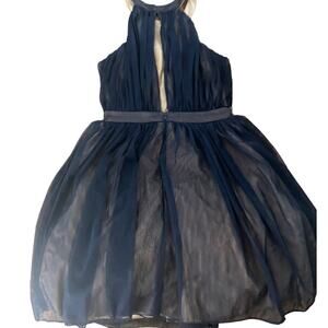 Jodi Kristopher Navy Tulle Jeweled Mini Dress Size 3