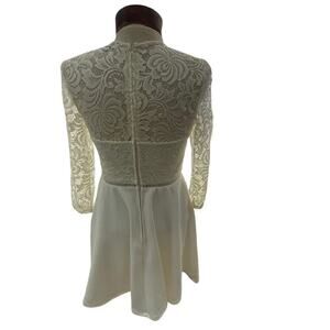 Excellent condition Jodi Kristopher cream lace skater style dress, 3/4 lace sleeves, fully lined in the front, lace back, zips up the back