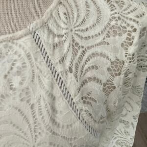 Jodi Kristopher Size 7 Cream Lace Skater Style Dress Bridal Lace Sleeves