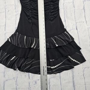 Jodi Kristopher WOMENS SIZE SMALL Black Ruffles Stretch Dress VINTAGE MADE USA
