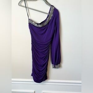 Jodi Kristopher purple formal cocktail one shoulder mini dress size 5