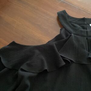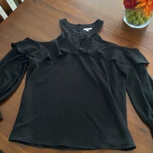 Jodi FLL Open Shoulder Ruffled Black Blouse