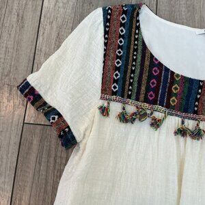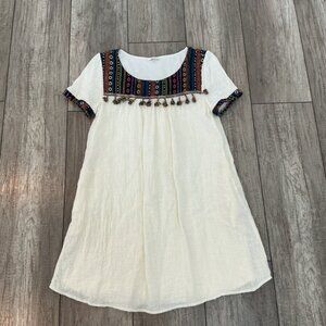 Jodifl Bohemian Tassel Dress Colorful Embroidered Trim Casual Dress Size S