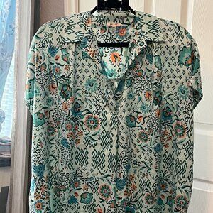 🌿 Jodifl Boho Mint Green & Orange Floral Blouse - Size Large 🌿