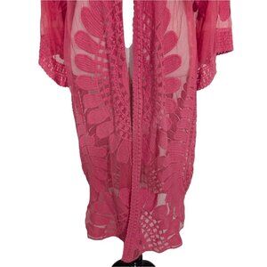 Jodifl Crochet Lace Kimono Cardigan Womens Size Large Pink Oversized Boho
