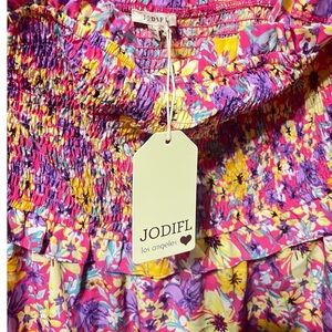 #Jodifl #BohoStyle #SummerDress #FloralFashion #TieredDress #FestivalOutfit #CottagecoreStyle #NWTFind #SmockedBodice #AdjustableStraps #LightweightDress #WomensFashion #PoshFinds #BrightAndBold #VacationReady