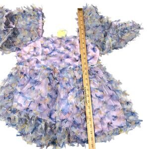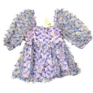 Jodifl Lavender Floral Tulle Blouse/ Mini Dress Puff Sleeve Square Neck Size M