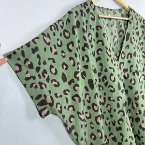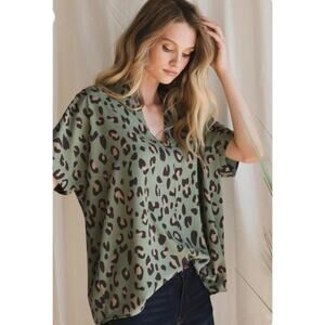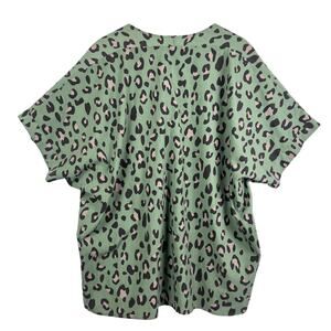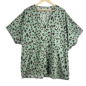 Jodifl Lucia SAGE Leopard Print Boxy V-Neck Lightweight Unlined Causal Top 3X