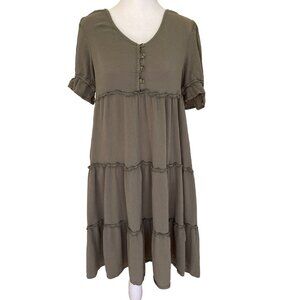 Jodifl Olive Green Tiered Ruffle Dress – Size S
