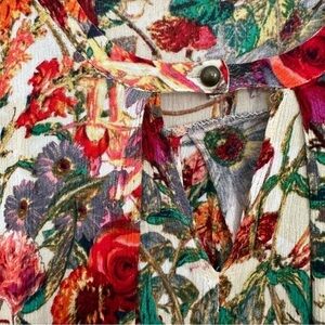Jodifl Shirt Top Floral Draping Asymmetrical Fairy Feminine Red & Cream Size S