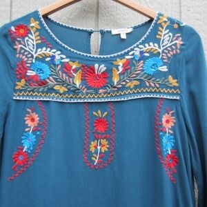 Jodifl Blouse Women M Colorful cuff Sleeve Embroidered Flower Roomy Retro Loose Relax fit