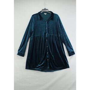 JODIFL VELVET BUTTON-UP BABY DOLL DRESS TEAL LARGE WHIMSY GOTH WITCHY