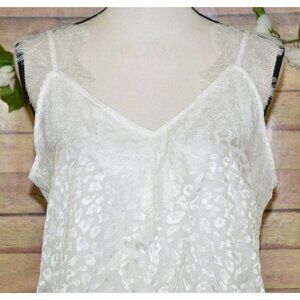 This Jodifl white lace subtle cheetah print tank top in size M offers a flirty, festival-ready look. Designed with a v-neck and slinky fit, it's perfect for stylish women who love to make a statement.