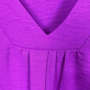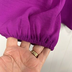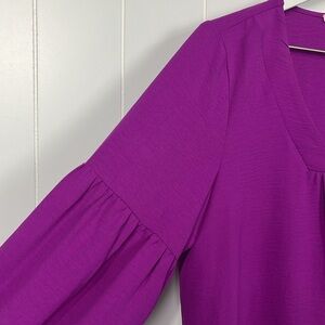 Jodifl Womens Tunic M Purple Pullover Vneck Balloon Sleeves Stretch Cuffs 100% Poly Loose Flowy Vibrant EUC