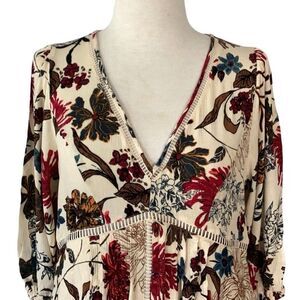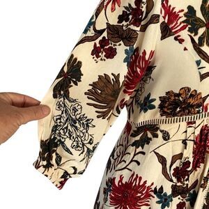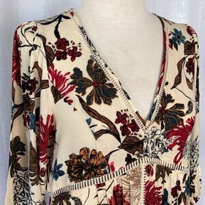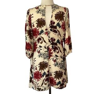 Jodifl Boho Floral Deep V Neck Lined Mini Long Sleeve Dress Women’s Small