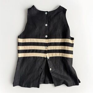 Joe 100% Linen Button Up Back Striped Black Top Large Neutral Luxury Summer