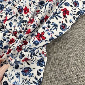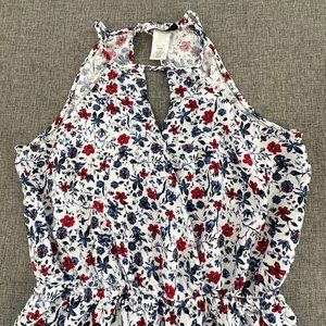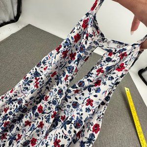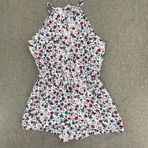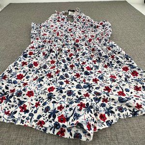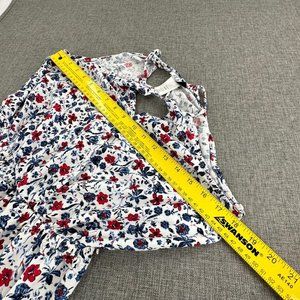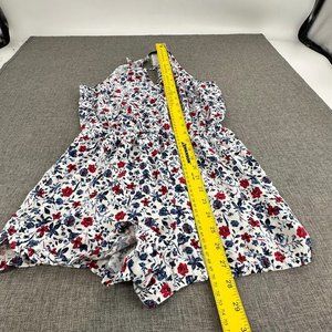 Joe B Floral Romper Sleeveless Cinched Waist Keyhole Neckline Large White Red Bl