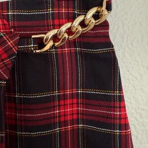 Keywords: plaid skirt, mini skirt, red plaid, black plaid, chain skirt, wrap skirt, party skirt, club skirt, joe b skirt, gold chain, womens skirt, small skirt, plaid mini skirt, fashion skirt, stylish skirt, clueless, light academia