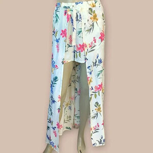 Joe B Tropical Romper Shorts Overlay Open Maxi Skirt Size L Tie Waist Pull On