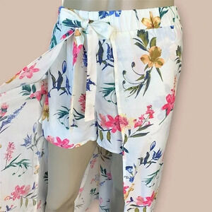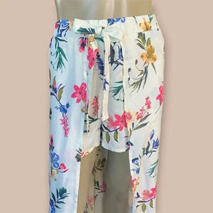 Joe B. By Joe Benbasset Tropical Romper Shorts Overlay Open Maxi Skirt Size L Tie Waist Pull On Shorts